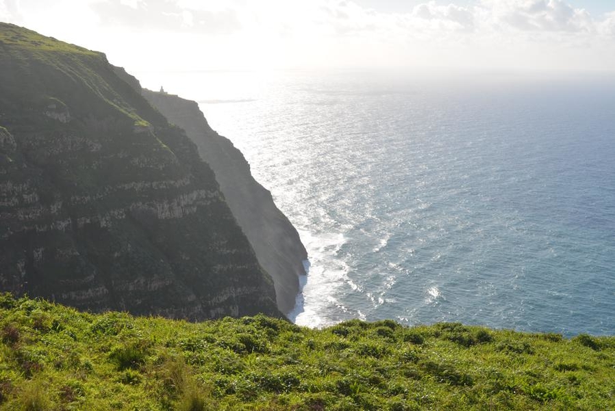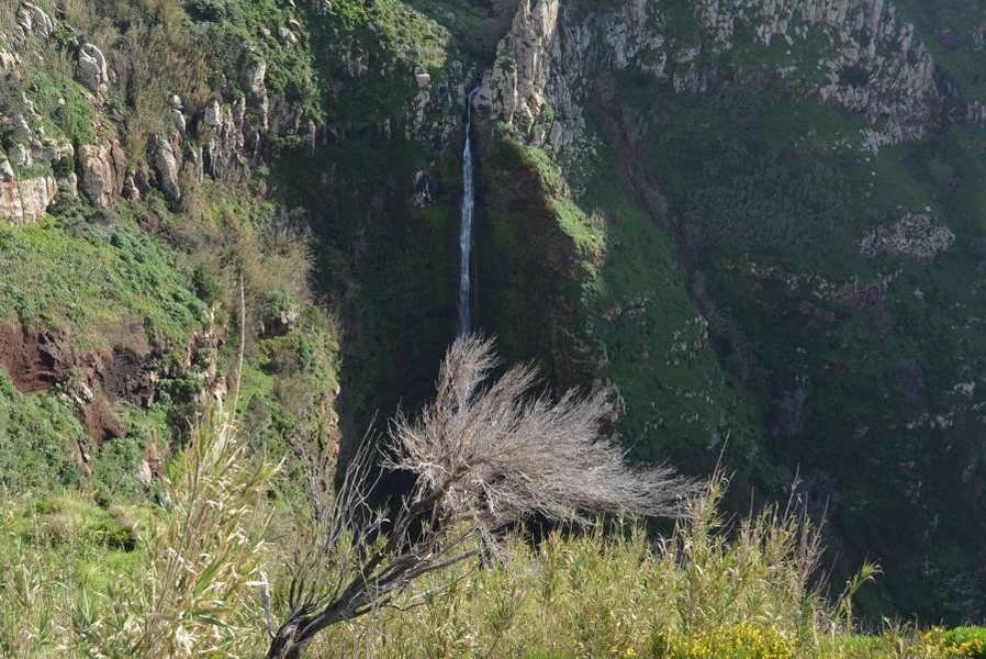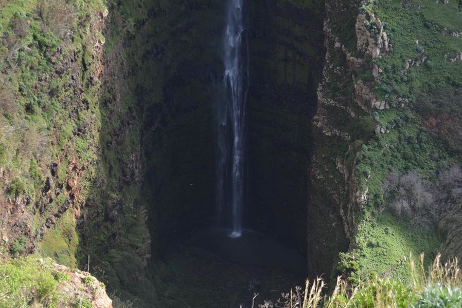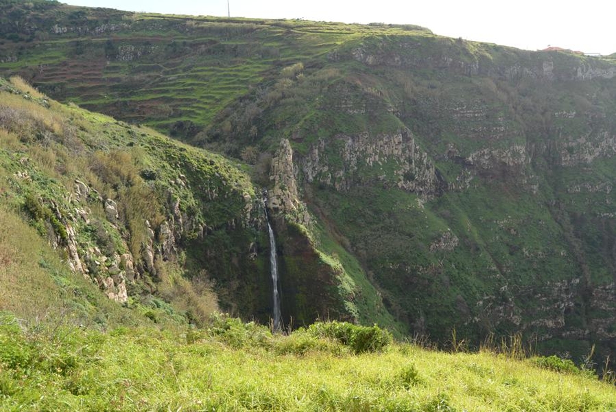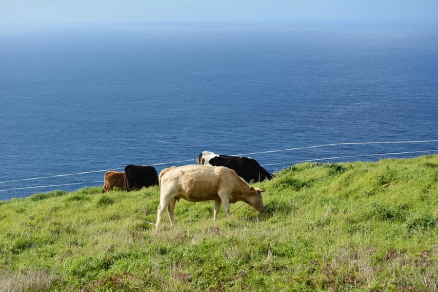 Ein grosser Wasserfall, ein paar Kühe und eine steile Felsküste erwarten uns am Ende des Weges zum Miradouro Garganta Funda.