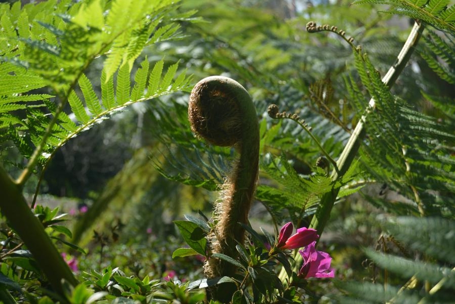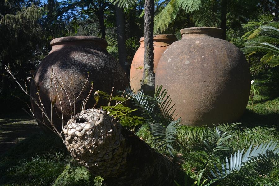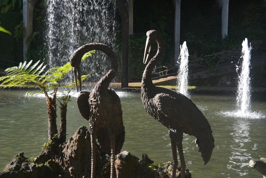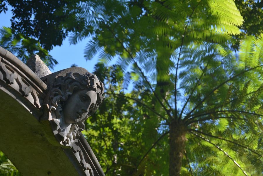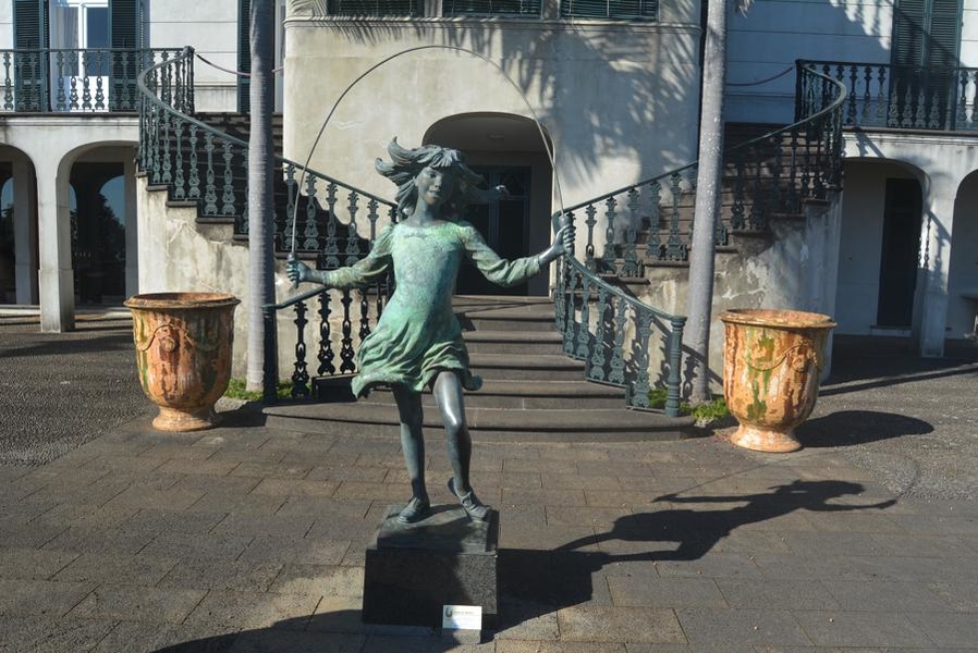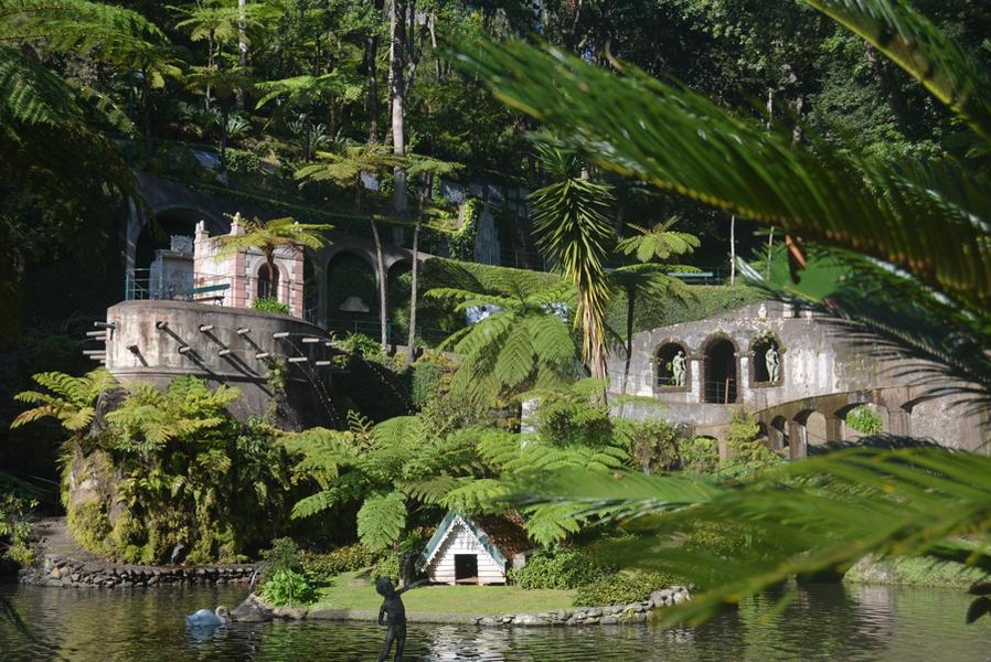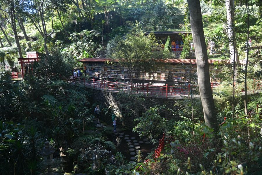 An unserem letzten Ferientag auf Madeira trägt uns die Seilbahn hoch auf den Hügel von Funchal zum Monte Palace Jardim Tropical, einem riesigen Park voll mit üppigen tropischen Pflanzen und dazwischengestreuten Kunstobjekten.